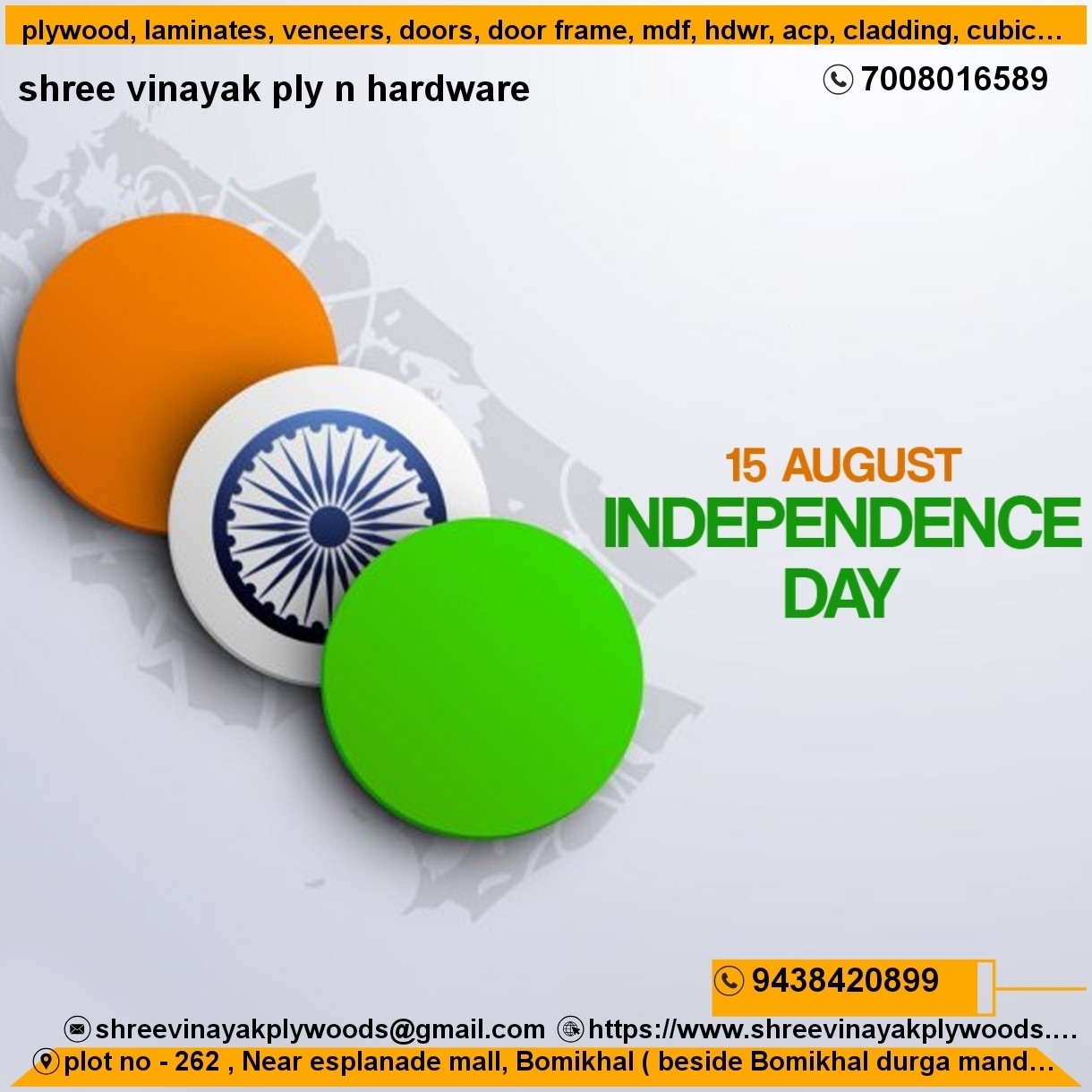 Shree Vinayak Ply & Hardware 7008016589 2025-08-15T04:45:15 2025-08-15T04:45:15 Shree Vinayak Ply & Hardware 7008016589 Happy independence day! Azaadi, freedom, indepedent he hum sabko pyaari ! Quality plywood lagwa k...Happy independence day! Azaadi, freedom, indepedent he hum sabko pyaari ! Quality plywood lagwa k...2025-08-15T04:45:15 read more